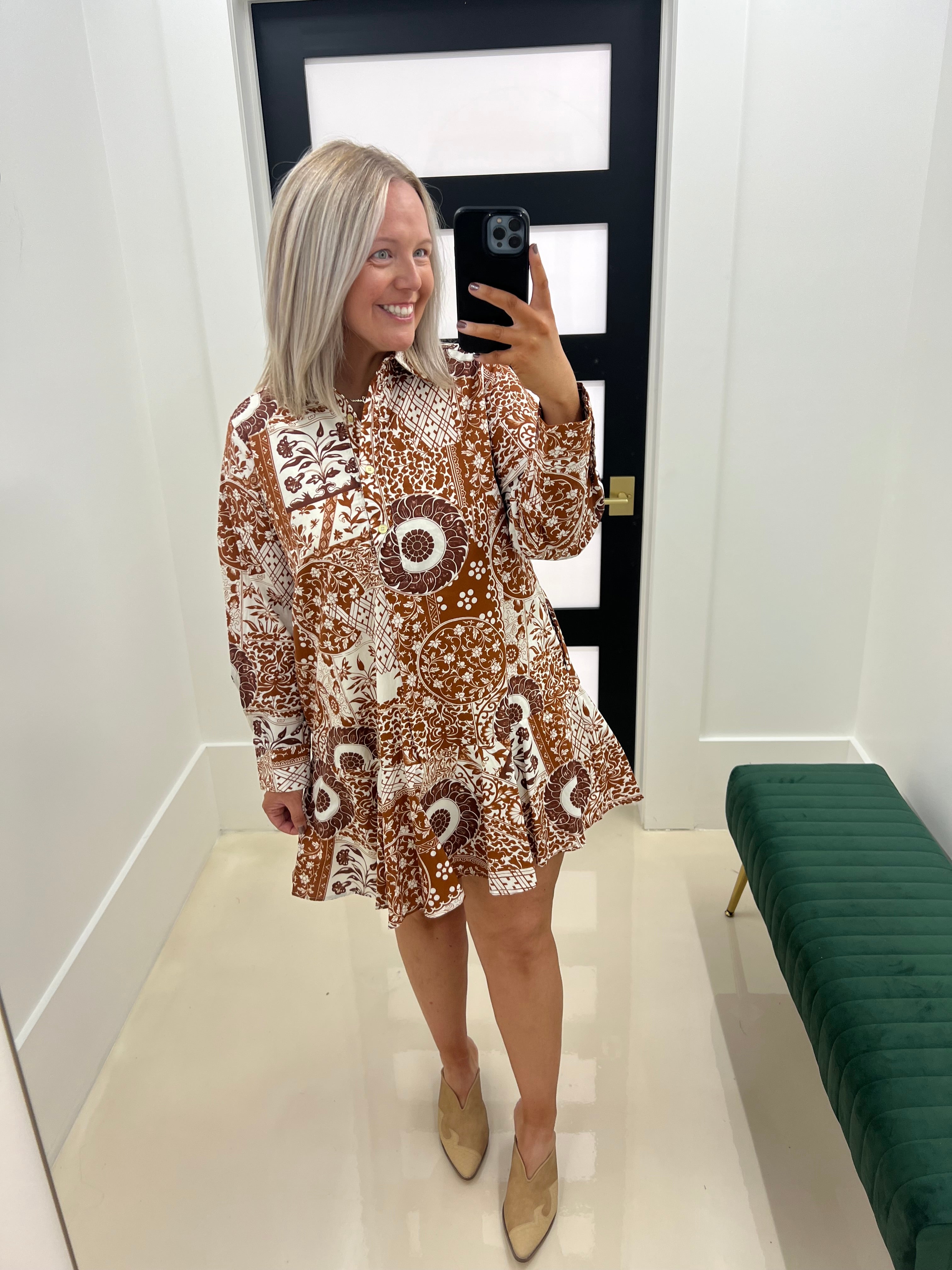 Elevate your everyday wardrobe with The Angel Dress in a timeless camel tone. This versatile v-neck collared button-down combines classic sophistication with modern comfort, making it perfect for the office, weekend outings, or layered styling. The structured collar and full button front offer polished elegance, while the relaxed fit ensures all-day wearability. A wardrobe essential that transitions seamlessly from season to season.