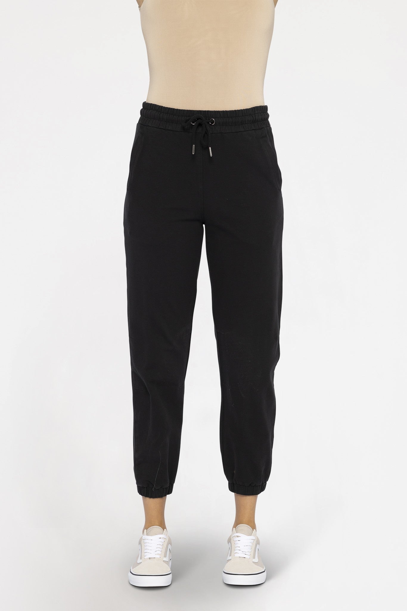 Garment-dyed for a chic, lived-in look. Go the distance in these comfortable joggers, featuring a drawstring waist, side pockets, and a swoop back seam that flatters your figure. 95% Cotton 5% Spandex. Fit is true to size