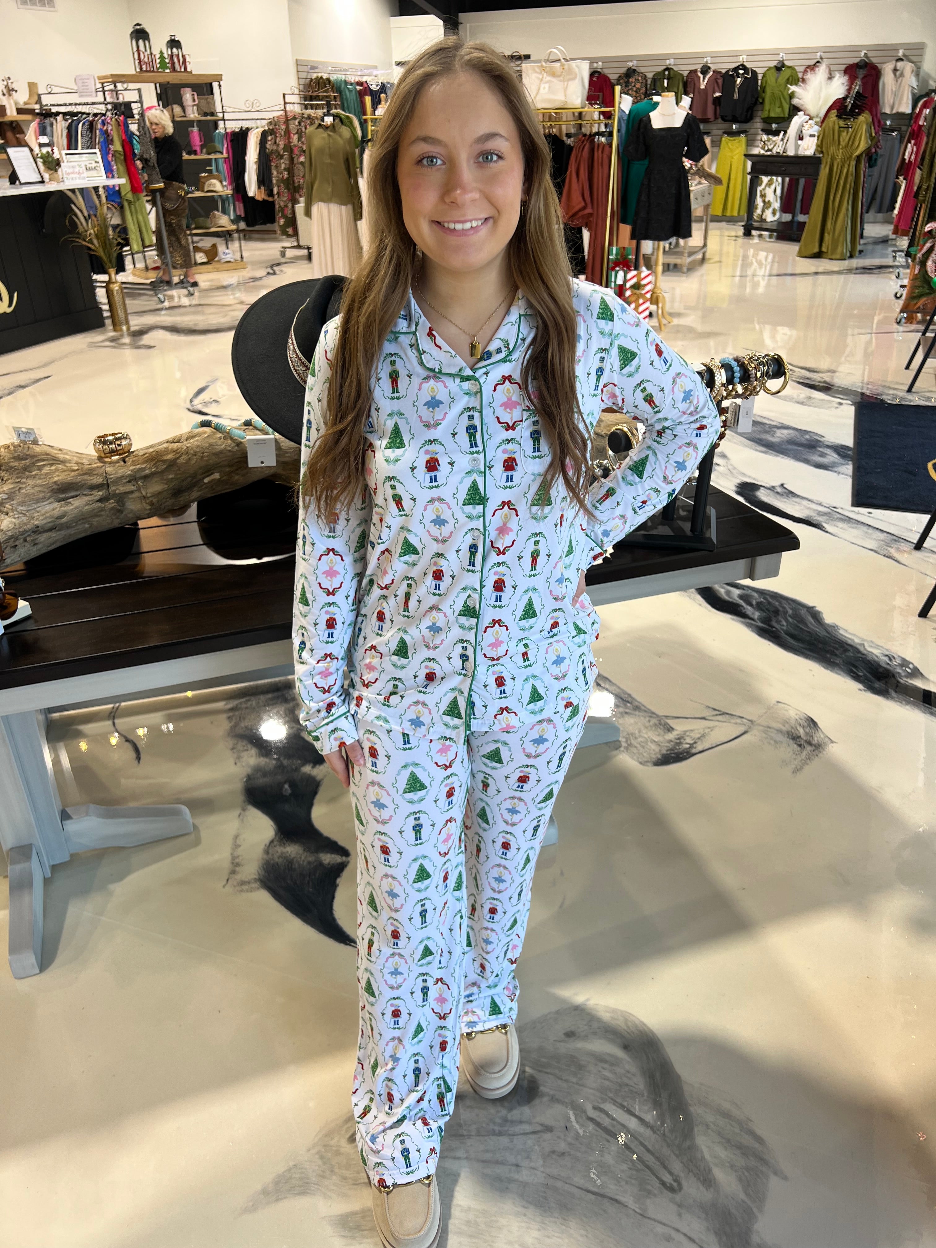 Slip into festive comfort with our Nutcracker Waltz Pajama Pants, featuring an enchanting Christmas design that celebrates the season in style. Crafted in soft white fabric with an adjustable drawstring waistband, these pants offer the perfect blend of coziness and holiday cheer. Whether you're lounging by the fireplace, hosting a cozy gathering, or enjoying quiet moments with loved ones, these pajama pants deliver warmth and seasonal spirit. The all-over Christmas pattern makes them an instant conversation starter, while the relaxed fit ensures you'll reach for them night after night. Make your holiday wardrobe complete with a pair that brings joy to every moment.